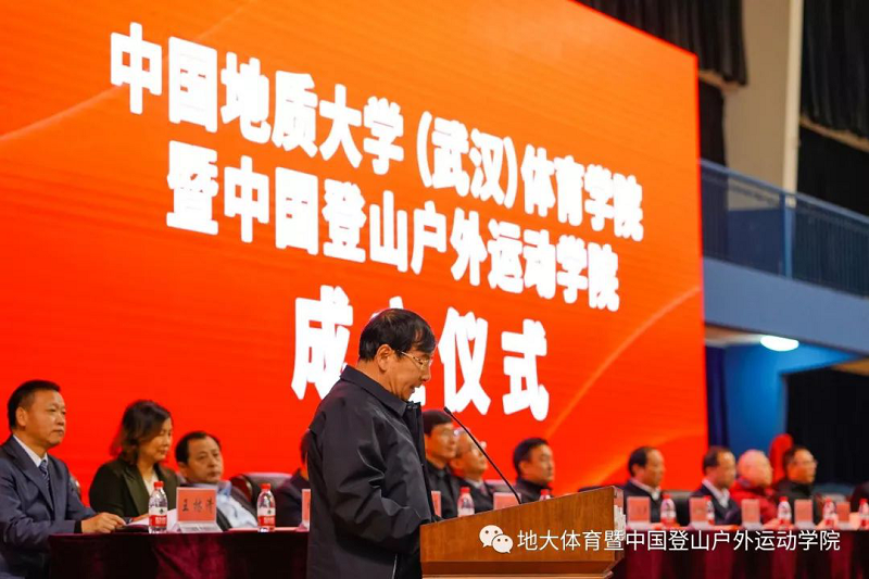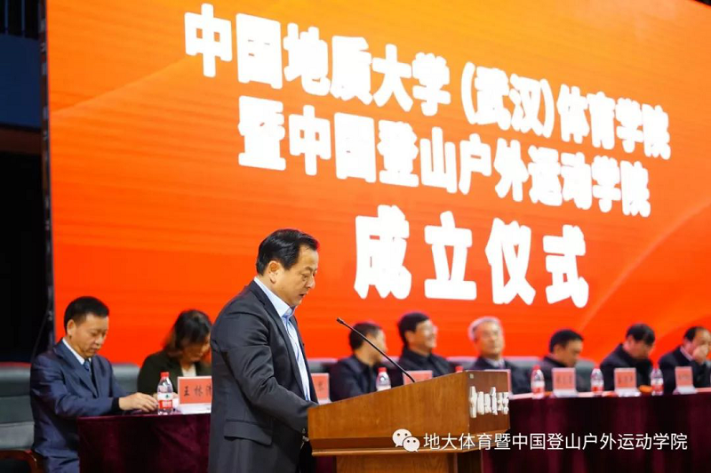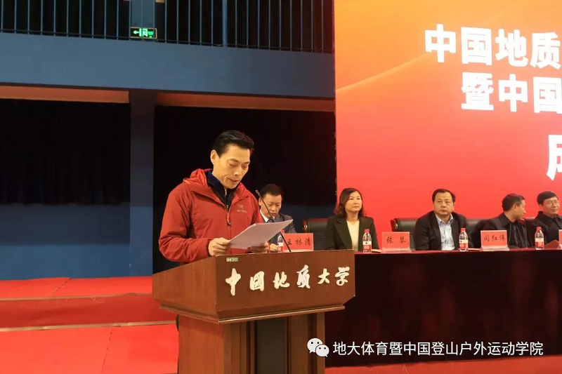 国家体育总局登山运动管理中心主任、中国登山协会主席李致新同志在致辞中赞扬了地大师生“不畏艰险、顽强拼搏、团结协作、勇攀高峰”的中国登山精神,表达了对共建中国登山户外运动太阳成集团tyc的充分肯定和大力支持,使之成为国内一流、国际具有一定影响力的中国特色的综合性应用型专门运动太阳成集团tyc。祝愿中国登山户外运动太阳成集团tyc茁壮成长!