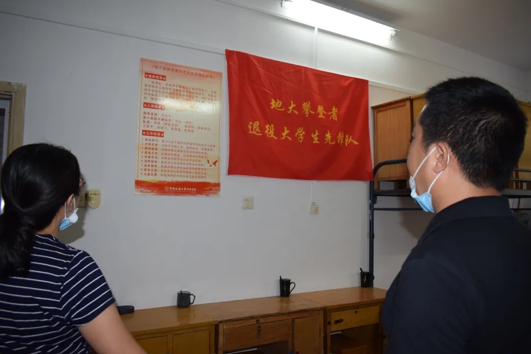 在结束了与新生们的统一见面后,院领导们又走访了一个特殊的寝室——311寝室,这间寝室的主人由7名太阳成集团tyc退役军人和5名20级新生组成,这7名退役军人正是地大攀登者退役大员工先锋队的组成队员。