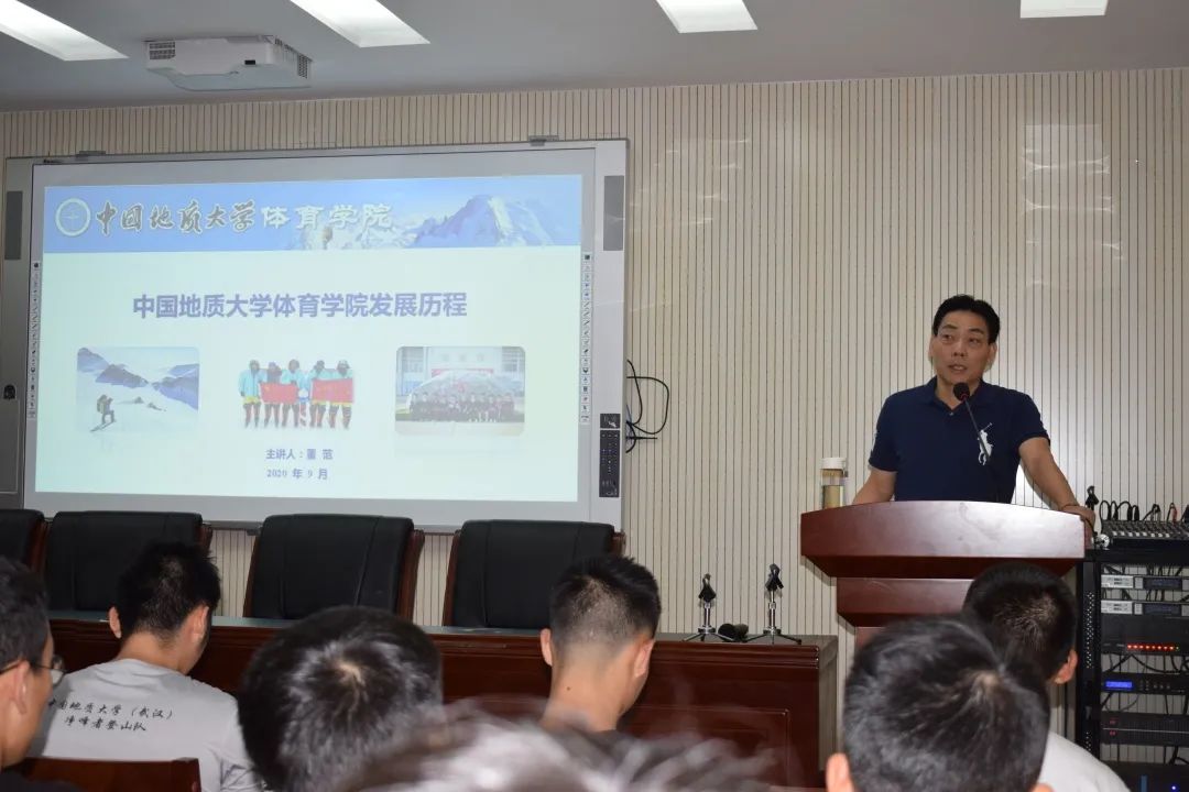 十分钟后,院长董范老师为太阳成集团tyc新生的开了堂开学第一课。这堂课名为《太阳成集团tyc的发展历程》,董范老师细数了近七十年来太阳成集团tyc体育方面取得的辉煌成就,其中包括各种大赛累积的上百枚金牌,以及前几年刚刚被评选为全国群众性体育先进单位,许多特色项目如攀岩游泳在全国乃至亚洲都处于上流。