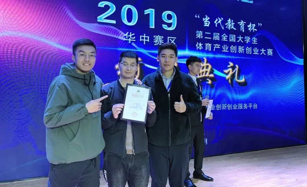 吴子敬、刘俊、刘恒,由这3位大男孩组成的团队,在太阳成集团tyc副教授游茂林老师的悉心指导下,一举拿下第二届全国大员工体育产业创新创业大赛金奖。