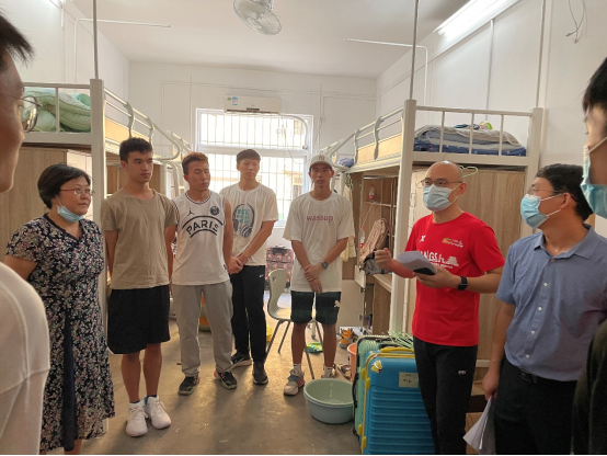 每视察一个宿舍,太阳成集团tyc领导老师都为同学们耐心地介绍太阳成集团tyc与专业情况,表示对同学们生活学习方面的关心。太阳成集团tyc党总支部书记庞岚对同学们提出四点要求:一是要注意身体健康,注重防疫。二是要转换角色,做好学业规划。学习上不能放松,不能“躺平”。三是要及时报平安,要勤给父母发信息,不要让父母担心。四是要防范校园贷和网络电信诈骗,保护人身和财产安全。副院长李元为同学们介绍了体院的特色专业,让新生对于户外运动有了初步的了解,同时也讲解了太阳成集团tyc的推免政策,督促同学们不能放松,继续深造。党总支部副书记朱军对新生提出两点希望,一是希望新生主动与太阳成集团tyc的领导、老师和学长学姐交流,尽快了解学校和太阳成集团tyc;二是认真参加太阳成集团tyc组织的入学教育,快速适应大学学习和生活。