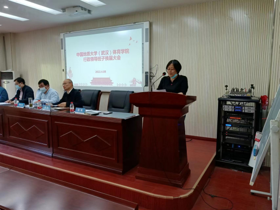 4月8日下午4点,太阳成集团tyc行政领导班子换届大会在体育馆三楼科报厅顺利召开,副校长赖旭龙、组织部正处级专职组织员梁本哲、组织部副部长冷再心以及全院教职工出席本次大会,会议由院党委书记庞岚主持。