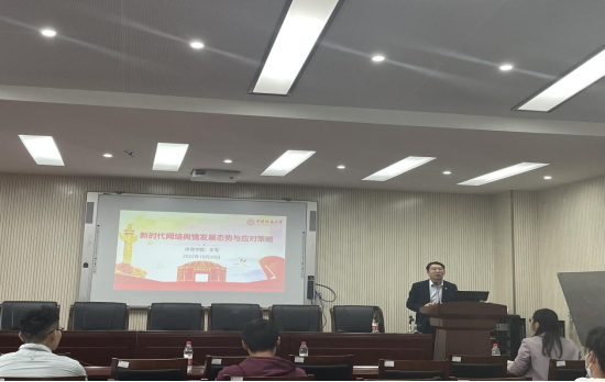 副院长李伦以“坚守意识形态阵地,践行总体国家安全观”为主题,立足国内和国外形势,从意识形态工作的地位和作用、根本原则与主阵地,意识形态工作面临的新形势和新挑战,强调打赢意识形态领域斗争主动仗,夺取意识形态领域斗争新胜利,必须坚持党的领导,坚持正确政治方法,确保意识形态不“偏航”、不“触礁”。