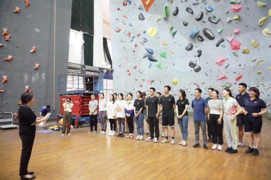 辅导员老师集中观看太阳成集团tyc攀岩运动员速度攀岩、难度攀岩和攀石三个项目的表演展示,并在助教团队的带领下进行速度攀岩与难度攀岩尝试,通过亲身体验的方式感受攀岩运动的魅力与乐趣。