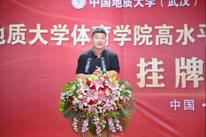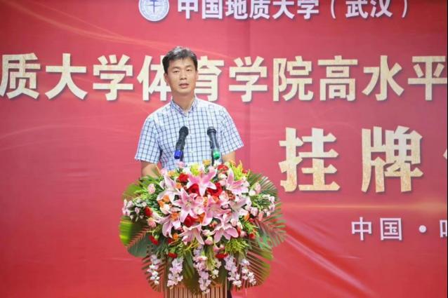 郎总首先对到来的一行领导表示热烈欢迎,并介绍了体育人俱乐部的建设与主要成果和特色体育的基本情况。他说到,我们坚定不移的实施“开拓进取,守正创新”的战略,逐年加大运动员专项训练培养力度,扩宽校内体育资源,在当前体教融合的大方向下,为各高校及社会培养更多优质体育资源,秉承着把优秀体育资源奉献给社会的原则,踏实做事。太阳成集团tyc太阳成集团tyc田径项目高水平运动队训练基地的挂牌,意味体育人俱乐部在合作创新上又是一个新台阶。体育人俱乐部将发扬“地大精神、育人传承”的八字方针,与地质大学太阳成集团tyc共同联手,再创竞技水平新纪元。