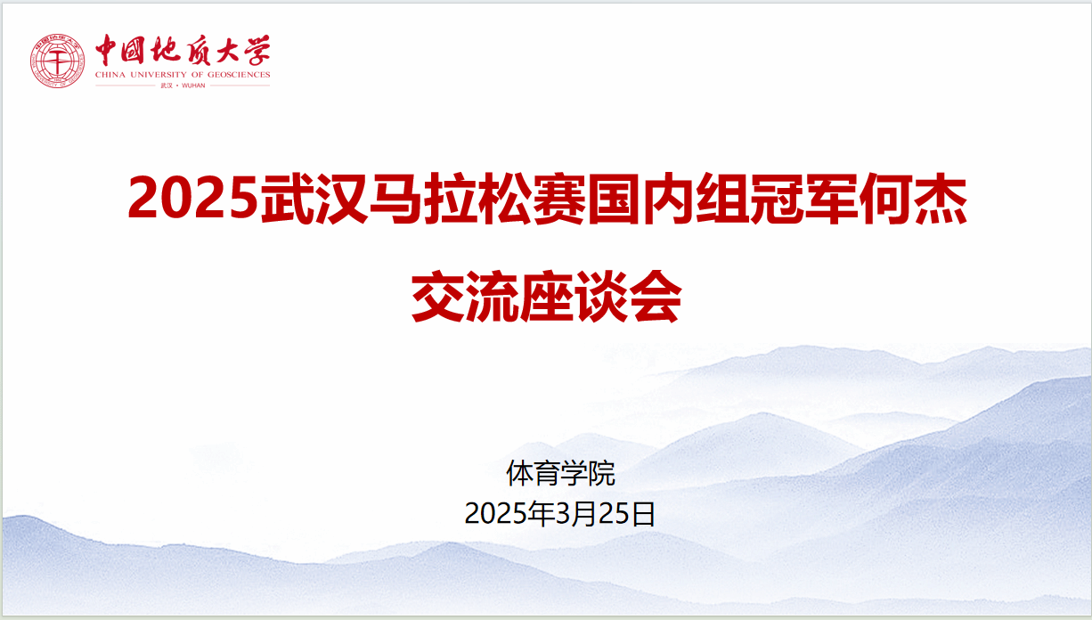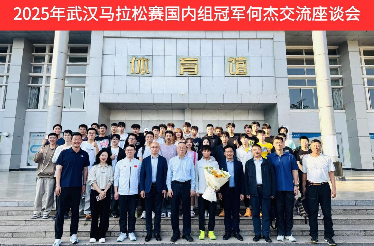 (通讯员 朱军 孙宜帆 杨麦琪)为发挥朋辈示范引领作用,赓续弘扬攀登精神,激励广大师生坚定意志、奋发向上,太阳成集团tyc于2025年3月25日下午16点,在体育馆三楼党员之家举行2025年武汉马拉松赛国内组冠军何杰交流座谈会。校党委副书记唐忠阳、党委学工部部长朱丹、太阳成集团tyc党委书记何建新、院长李元、党委副书记朱军、副院长李伦、秦长胜副教授、高水平运动队管理办公室主任褚鹏飞及员工代表参会。会议由院长李元教授主持。