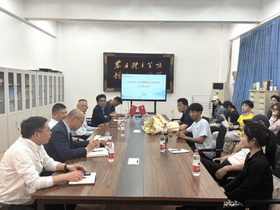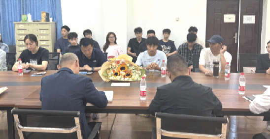 与会领导交流发言,党委学工部部长朱丹对何杰荣获佳绩表示祝贺,并勉励其发挥朋辈示范引领作用,激发广大员工走出宿舍,走向操场,积极参加体育锻炼。李元院长希望何杰能够不断突破自我,实现更高成就,赓续传承弘扬地大攀登精神。