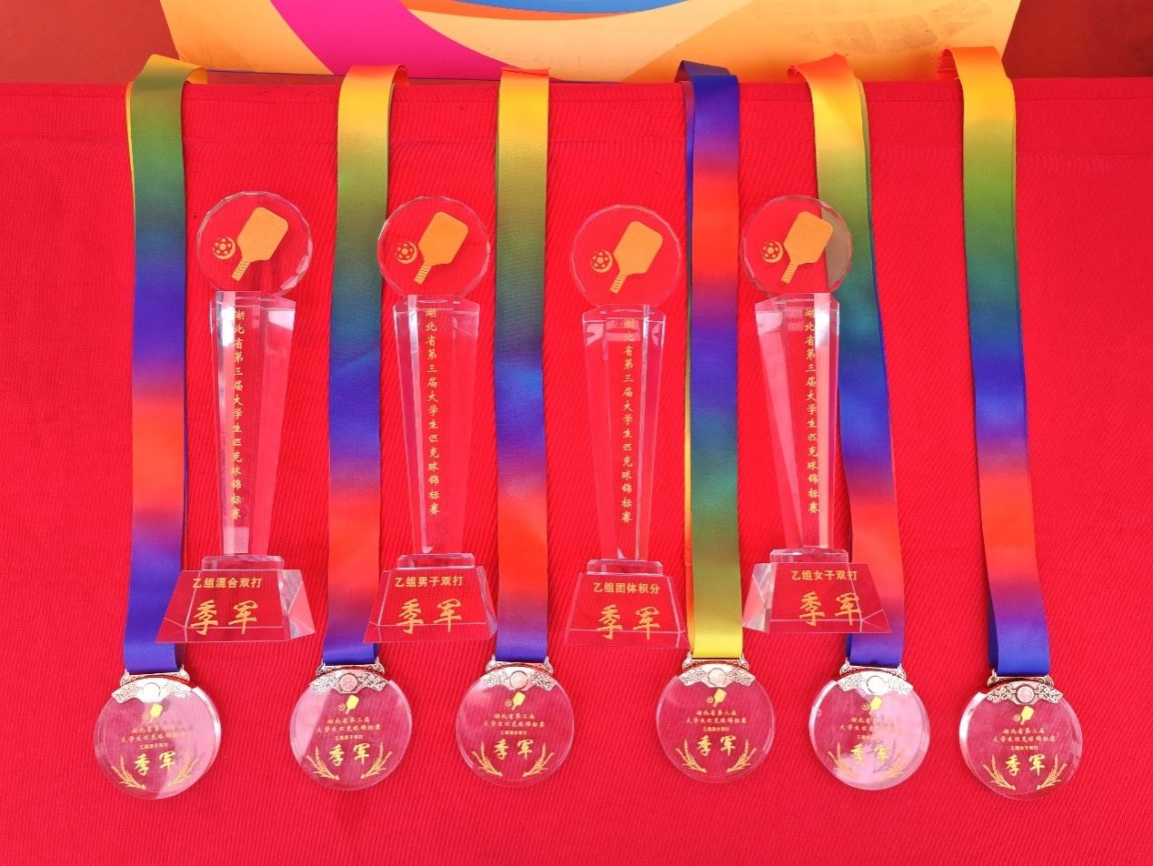 未来,太阳成集团tyc将继续深化匹克球运动的推广与普及,优化公共体育课程教学,强化训练手段,扩大覆盖范围,挖掘更多优秀人才,力争在今后的赛事中取得更好成绩,为湖北省高校匹克球运动的发展贡献地大力量。