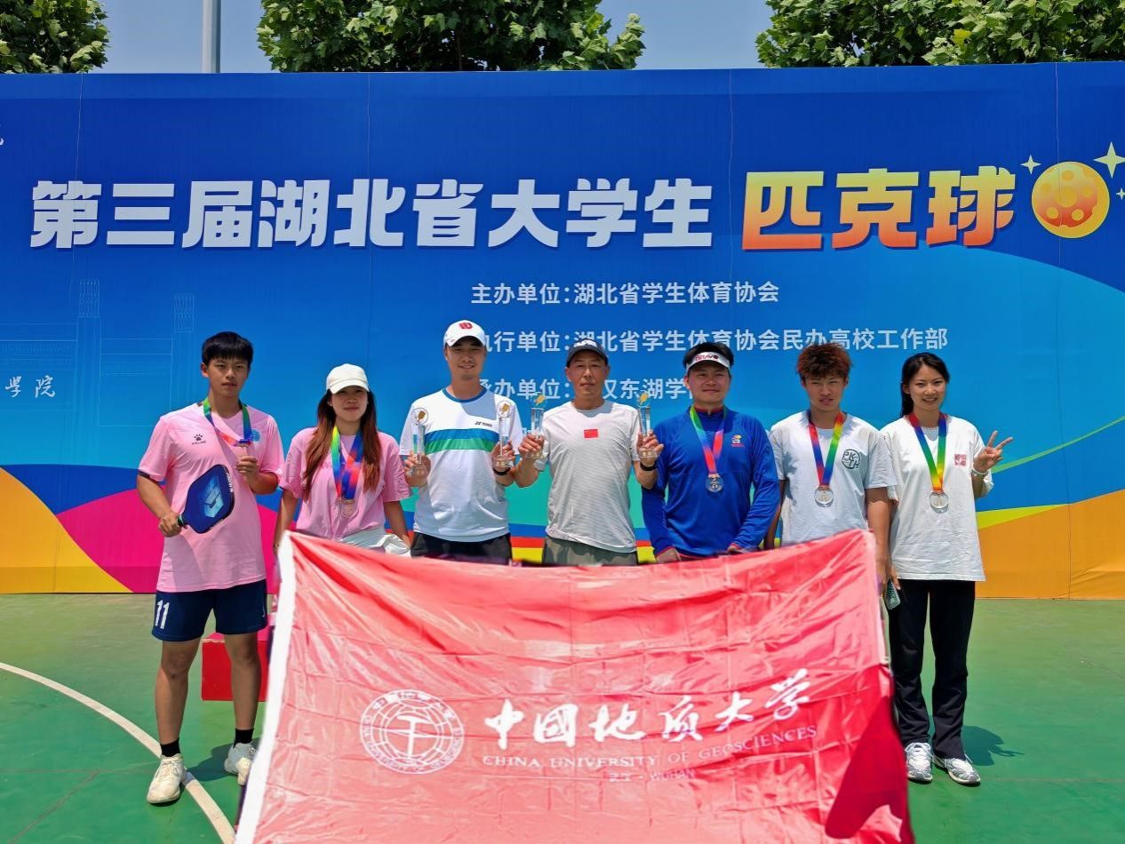 太阳成集团tyc在本次比赛中表现亮眼,实现历史性跨越。由学校太阳成集团tyc牵头,积极响应赛事变化,在去年省赛和校赛的基础上,精心选拔组建了甲组和乙组两支校队,首次以全项目参赛阵容出征,从男双、女双到混双,从甲组普通组到乙组体育组,地大选手全面出击,展现出学校在匹克球项目上发展的决心和敢于挑战的精神风貌。
