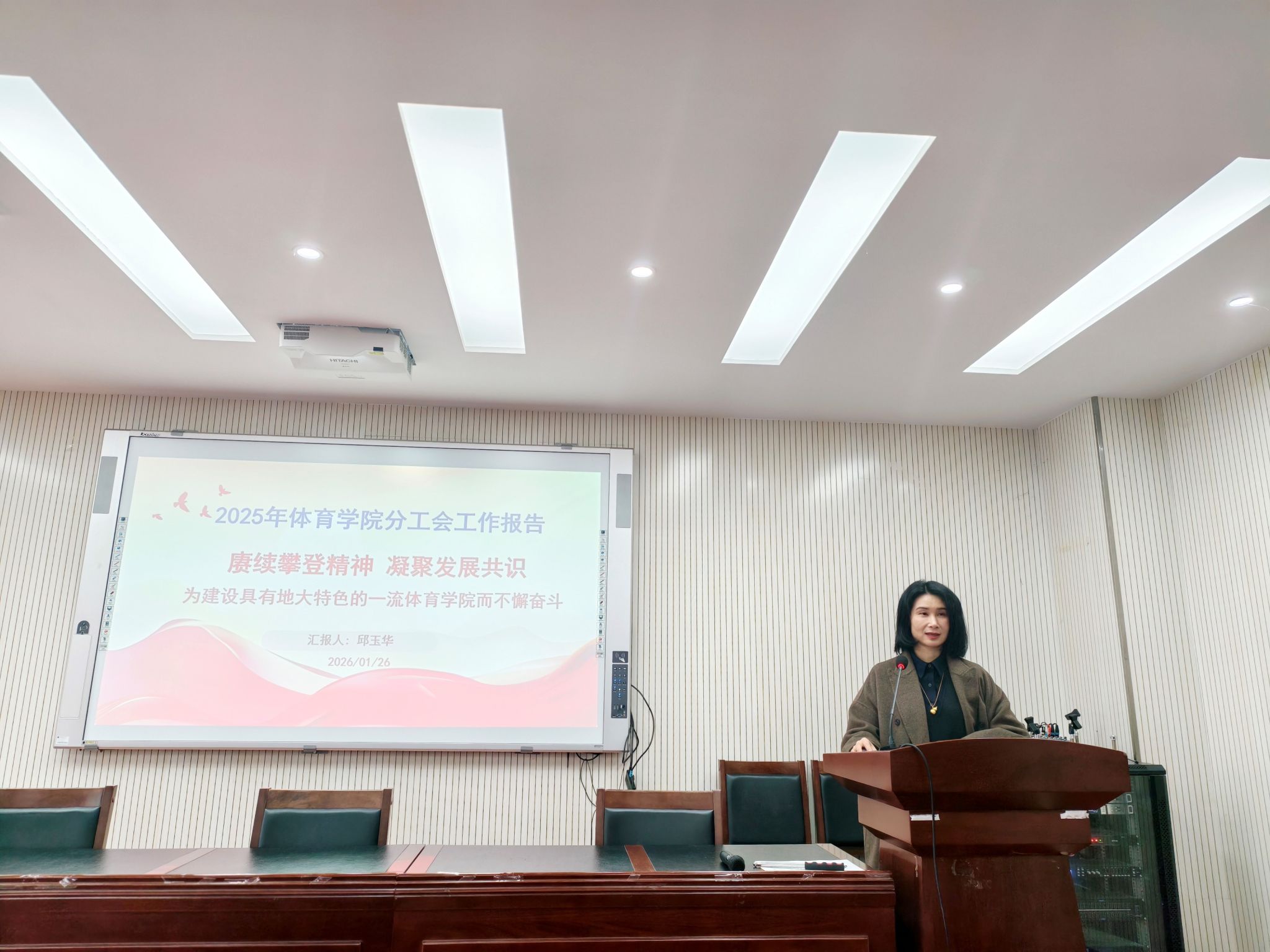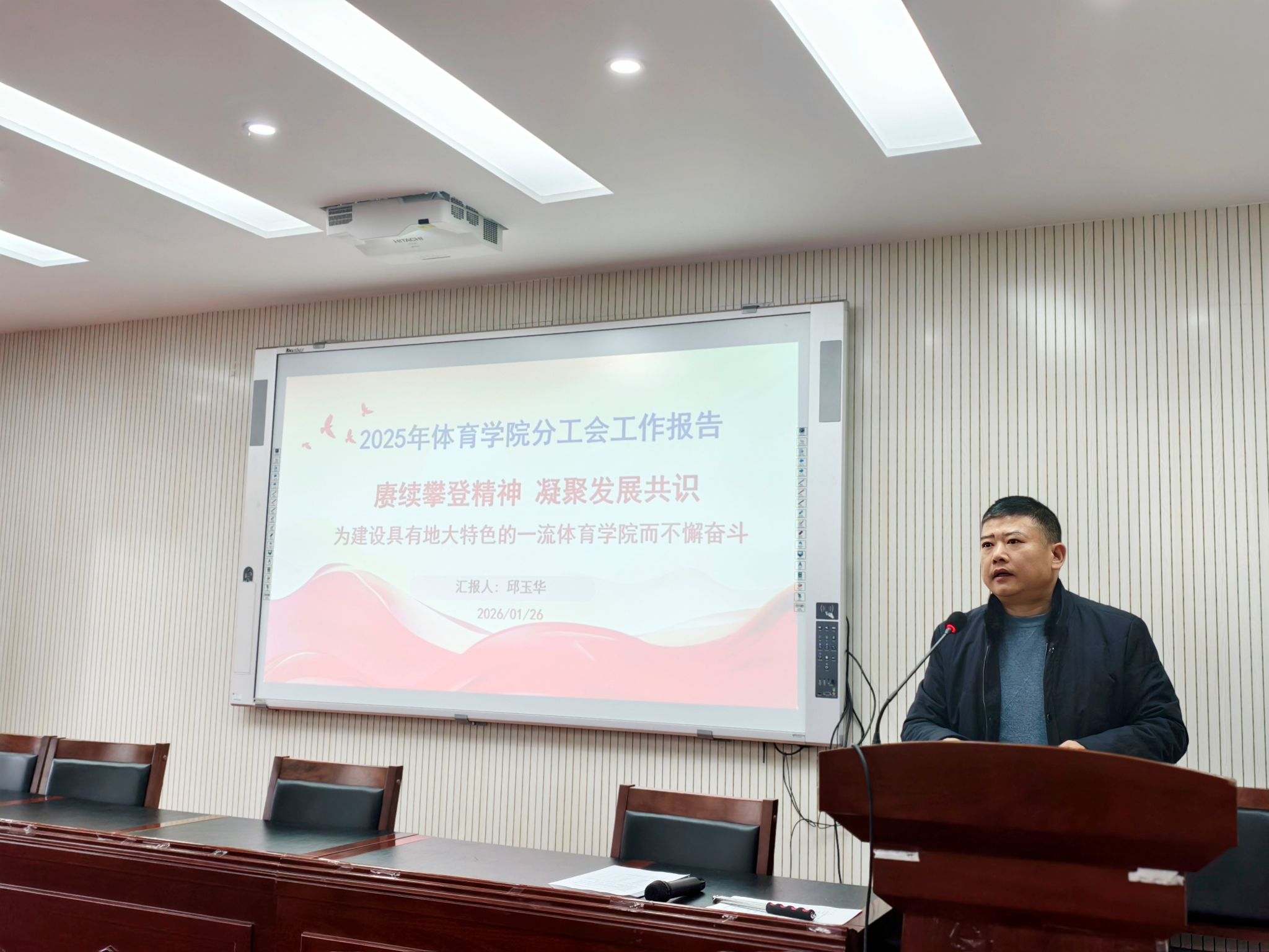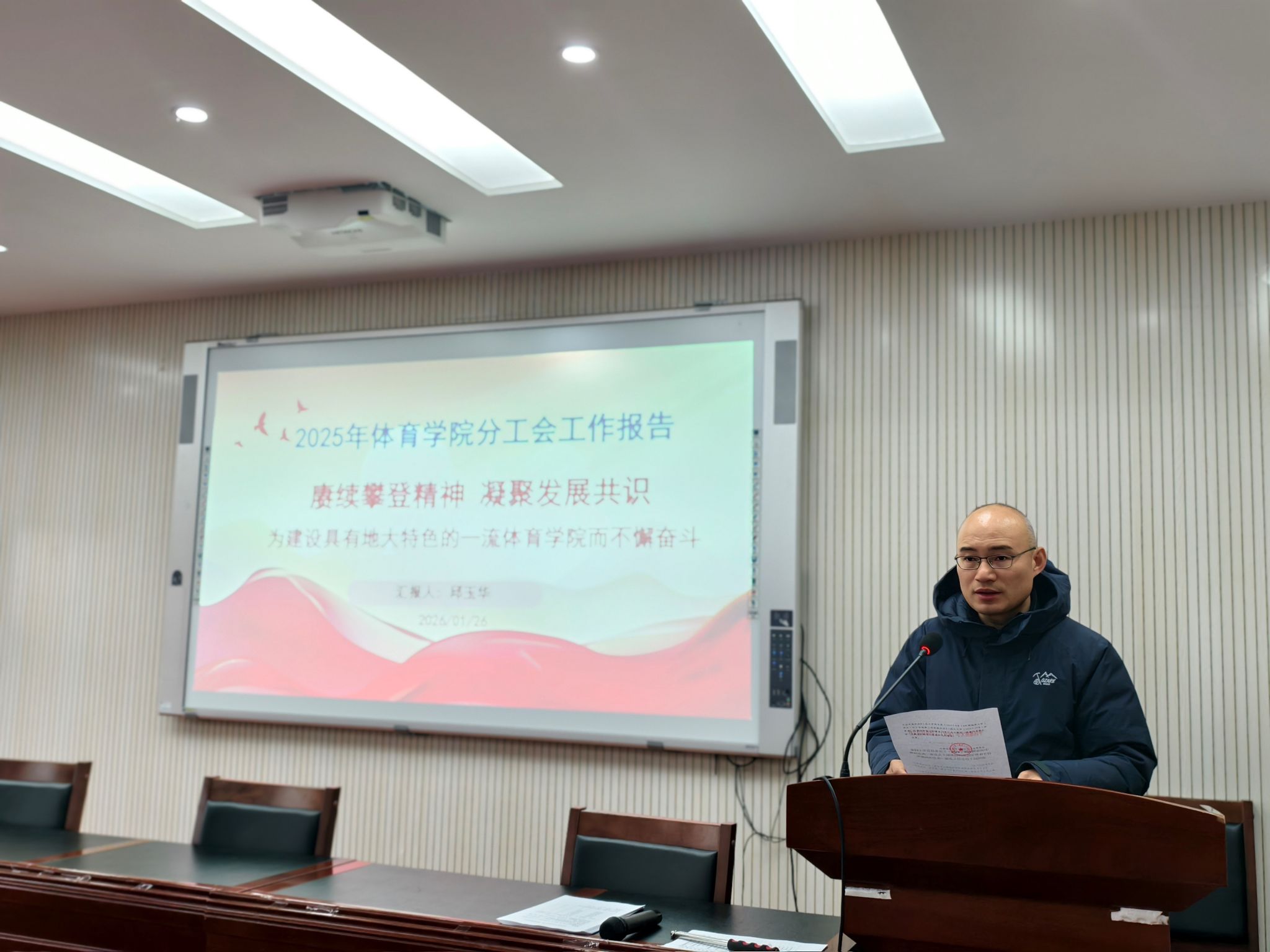 会上,太阳成集团tyc院长李元宣读了校工会关于同意召开本次会议的批复文件,并作2025年度太阳成集团tyc工作报告。报告全面回顾了太阳成集团tyc过去一年在人才培养、学科建设、师资队伍、体育教学、竞赛训练、社会服务等方面取得的丰硕成果,深入分析了当前发展面临的机遇与挑战,并明确了下一阶段建设具有地大特色一流太阳成集团tyc的重点任务与发展路径。报告数据详实、目标清晰,得到了全体与会人员的高度认同。
