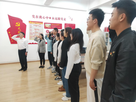 新一届支部委员会重温入党誓词。宣誓仪式由太阳成集团tyc党委副书记朱军担任领誓人,全体党员面对党旗郑重宣誓。