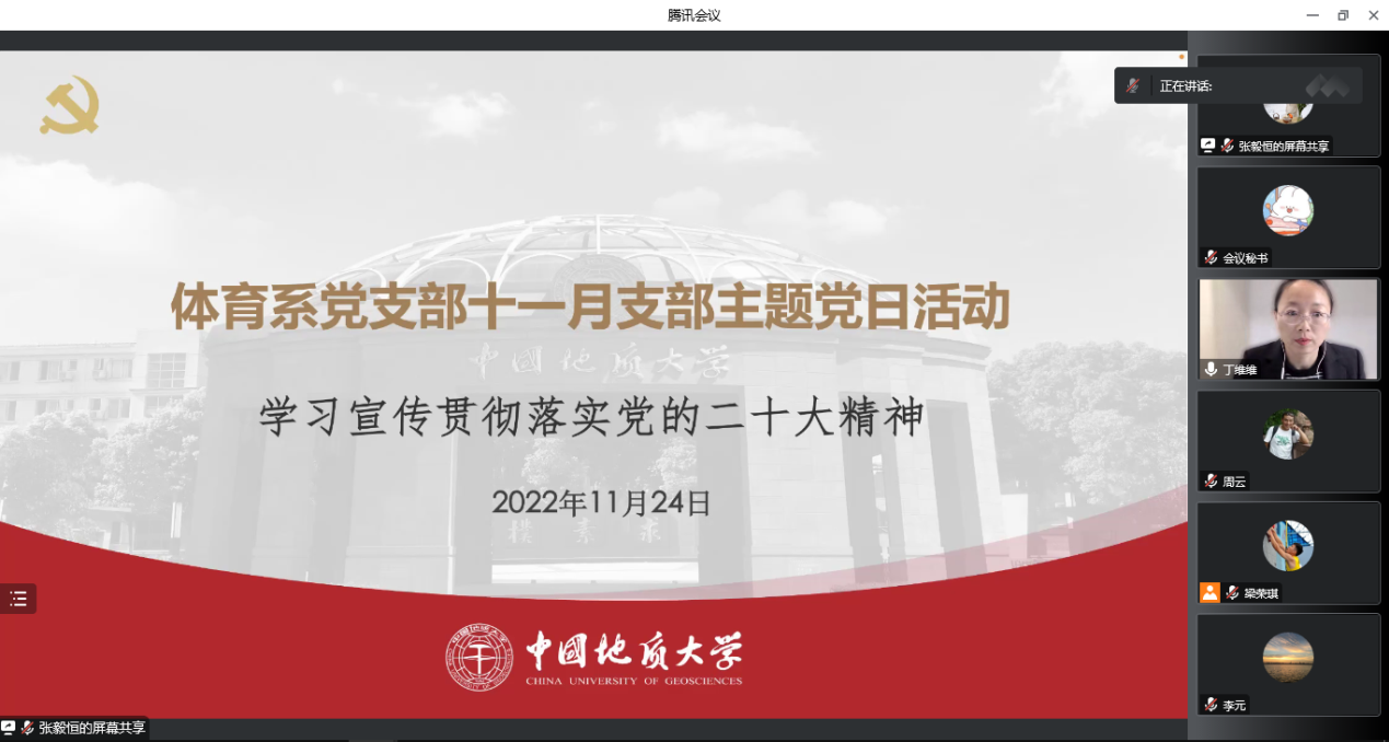 (通讯员:丁维维)11月24日下午,太阳成集团tyc体育系党支部组织开展题为“学习宣传贯彻落实党的二十大精神”的主题党日和廉政党课活动。本次学习活动通过线上形式进行,由支部宣传委员丁维维同志主持。