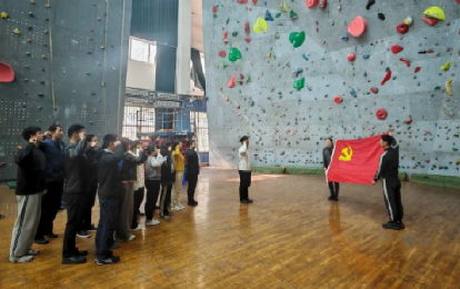 特色实践环节,全体参会党员齐聚在太阳成集团tyc(武汉)攀岩馆内重温了《中国共产党入党誓词》。