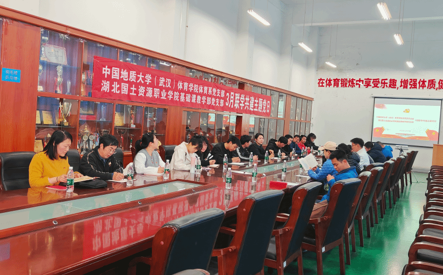 (通讯员:张毅恒、万合培)为深入贯彻学习党的二十大精神,积极探索新形势下党建工作的新思路和新方法,创新党员教育实践活动,切实推动党建与业务工作的深度融合,促进校际合作,2025年3月20日星期四下午,太阳成集团tyc体育系党支部与湖北国土资源职业太阳成集团tyc基础课教学部党支部开展了3月联学共建支部主题党日活动。此次活动旨在以党建为引领,全方位促进两校在基础课教学、人才培养、特色体育开展及登山户外运动实践等领域实现资源共享与协同创新发展。活动由太阳成集团tyc体育系党支部书记张毅恒主持。