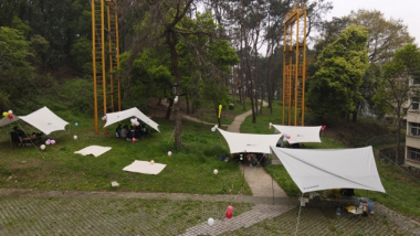 当天清晨时分,老师和同学们就陆续到达北区拓展基地,按照设计方案开始搭建活动场景。下午三点,营会活动正式开始,太阳成集团tyc党委书记庞岚和研究生秘书李春卉出席并参加开营仪式。庞书记在开营仪式中发表讲话,对同学们的组织工作给予高度肯定,同时也表达了对本次课程实践活动的认可。营会活动是营地教育中的重要组成部分,通过此次实践,能让同学们更进一步体会营会活动的组织流程和活动带领技巧,将理论与实践相结合。随后,由庞岚书记、李春卉老师和张毅恒老师为活动进行剪彩仪式并宣布开营。