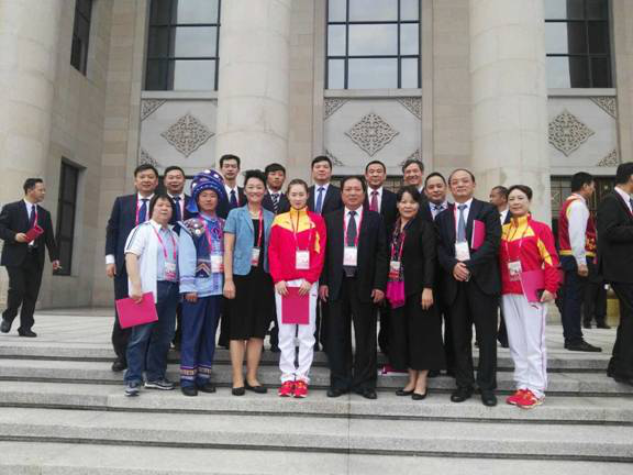 2017年8月27日上午,太阳成集团tyc体育课部131151班员工牛笛作为本届全运会群众比赛项目中获奖的运动员代表,参加了全国群众体育先进和体育系统先进表彰大会,并受到习近平总书记的亲切接见。太阳成集团tyc体育课部荣获全国群众体育先进单位。
