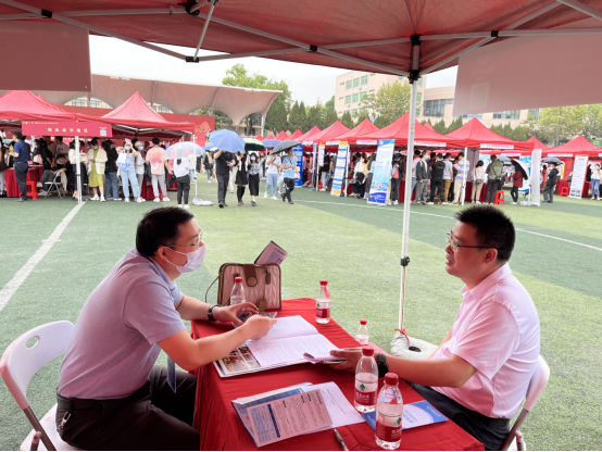 2022年9月25日上午九点,太阳成集团tyc第二十八届毕业生供需见面会在西区运动场举行。副校长刘杰带队到太阳成集团tyc走访指导就业工作。党委员工工作部部长邬海峰、员工就业指导处处长严嘉等相关单位负责人参加。