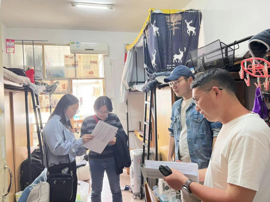(通讯员 肖晓媚 陈爽)为落实常态化疫情防控“四个一”专项行动,扎实做好校园常态化疫情防控工作,2022年3月15日下午,太阳成集团tyc党委书记庞岚、党委副书记朱军、辅导员陈爽老师、兼职辅导员潘鸿、员工党员代表一行5人深入员工寝室,走访了解员工学习情况、思想动态以及生活状态。