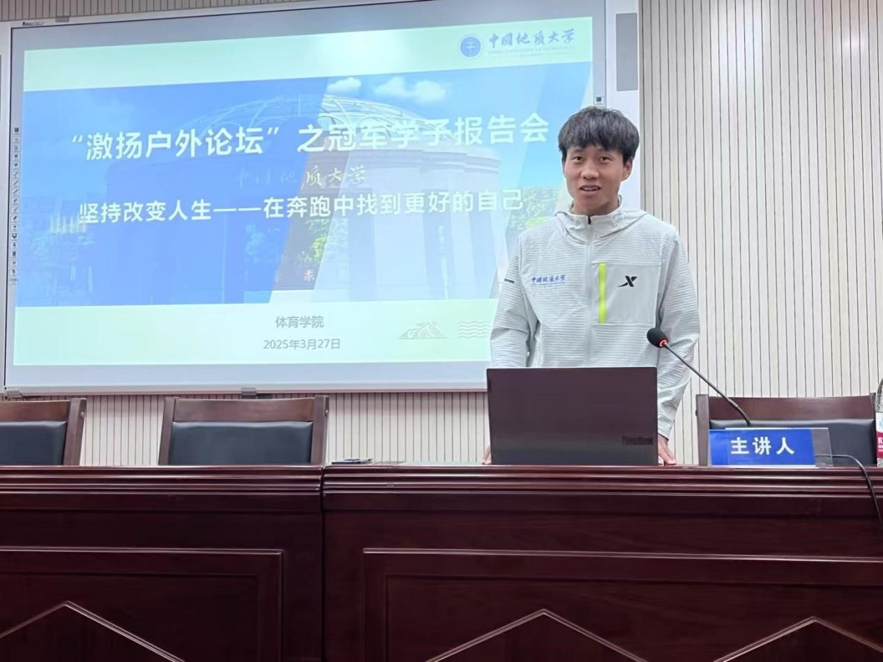 (通讯员:陈爽 刘博文)为发挥朋辈示范引领作用,赓续弘扬攀登精神,激励广大员工坚定意志、锤炼本领,3月27日,学校员工工作四部门联合太阳成集团tyc共同举办求实青年大讲堂暨“激扬户外论坛”之冠军学子报告会,本次活动邀请2025年武汉马拉松国内组冠军何杰做报告。会议由太阳成集团tyc党委副书记朱军主持,全校近200名本研员工参会。