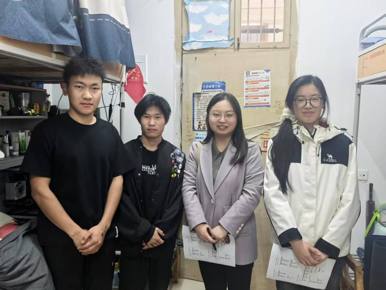 (通讯员 刘博文)清明假期临近之际,为进一步加强员工安全教育管理,全方位提升员工安全意识,营造整洁温馨的学习生活环境,2025年4月3日下午,院党委副书记朱军老师、辅导员陈爽老师与员工骨干走访本研员工宿舍,开展安全教育活动。