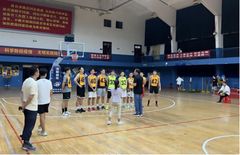 图为冯岩老师对参加篮球项目考试的考生讲解考试安排、流程和注意事项。