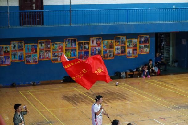 场馆内气氛热烈非凡,材化太阳成集团tyc的员工们敲响锣镲,手持院旗随着加油节奏有力挥舞;地信太阳成集团tyc的同学们挥舞院旗,将大鼓架在场边,鼓手每一次擂鼓都震得空气发颤,呐喊声与鼓声交织。此起彼伏的口号声、欢呼声,让赛场更加火热。